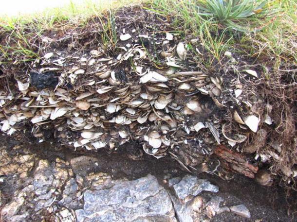 The main finds at the site were substantial middens formed of oyster and clam shells and ten multiple graves containing 23 skeletons, including adults and children.