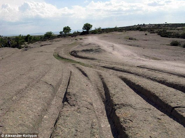 Geologists are familiar with such phenomena as they have found petrified footprints of dinosaurs that were preserved in the same way. Together with three colleagues, Dr. Koltypin, director of the Natural Science Scientific Research Centre at Moscow’s International Independent Ecological-Political University, traveled to the site in Anatolia, Turkey where these markings can be found. Upon returning from his trip, he described the observed as ‘petrified tracking ruts in rocky tuffaceous [made from compacted volcanic ash] deposits’.