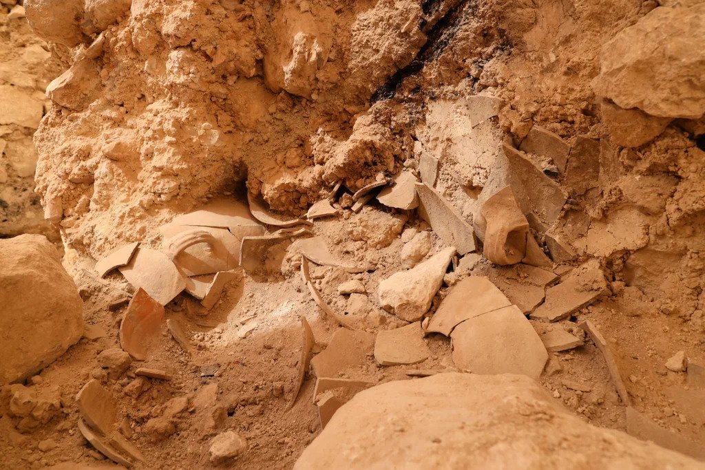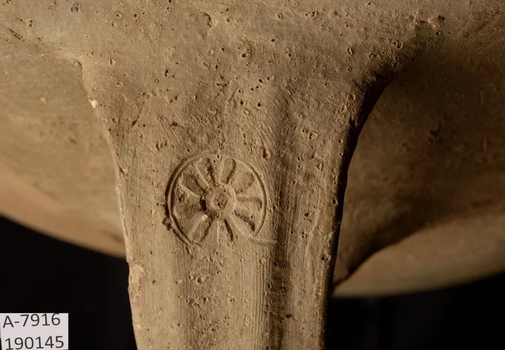 These jars date to the Iron Age. In some cases, their handles are marked with the rosette seal impression of the Kingdom of Judah. That symbol indicates that the clay jar and its content, the wine, were the possession of the royal Judahite administration.