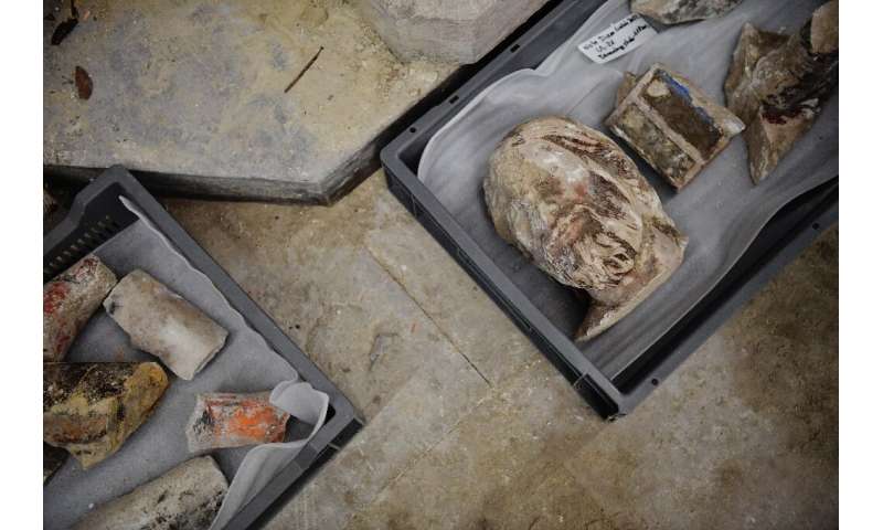 During a visit by AFP on Tuesday, archaeologists were delicately cleaning and excavating the sculptures emerging from the ground, including a pair of carved hands.