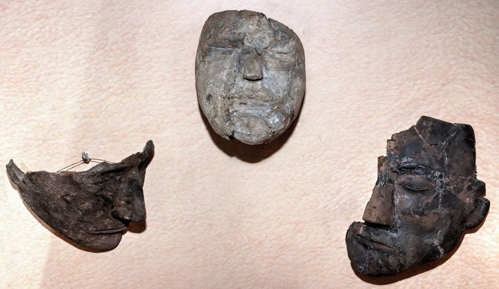 The masks were the most extraordinary feature of these burials. They were essentially portraits of the dead made using clay and plaster and embellished with red paint. On the forehead, a spiral was drawn, and the cheeks and chin were blushed with the paint as well.