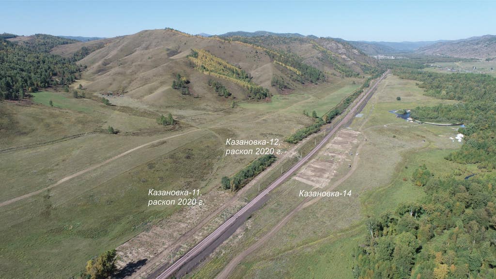 While performing construction works along the Mezhdurechensk–Tayshet railroad from 2019 to 2021, various sites from the Early Bronze Age to the later Middle Ages were discovered. These included burials of many cultures and settlements. One of the sites, called “Kazanovka 14,” was excavated in 2021.