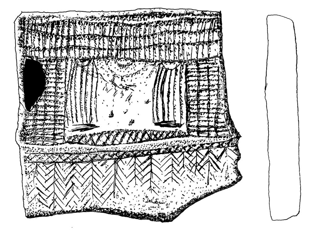 The panel’s centre is oddly empty, with some elements on the side and a semicircle in the middle. Despite its cryptic nature, Vybornov and his team were extremely excited by the find, a whisper left behind by these enigmatic people about themselves and their world, an unintentional message from the past. Learning about the finds and the burnt structure found in Kazanovka 14, and the petroglyphs on the slab, one wonders if it might show that very structure.