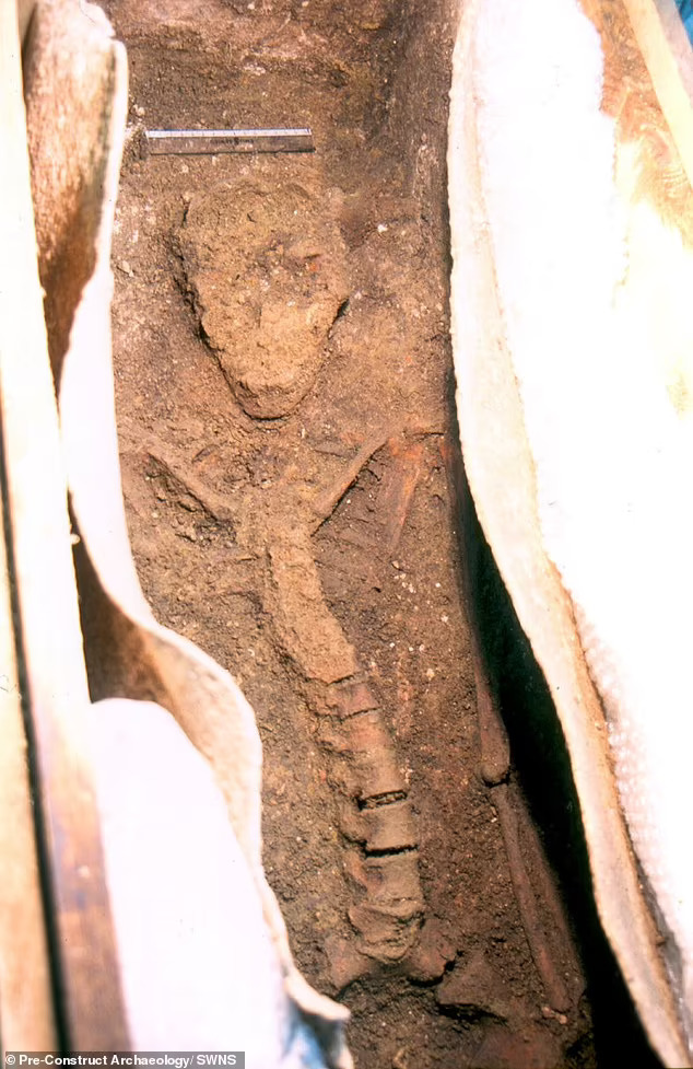 Dr Gerrard said: ‘We think during the 5th Century the grave is disturbed.