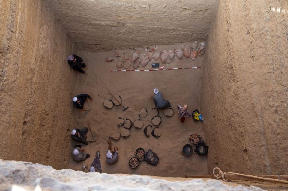 The collection of large ceramic vessels, containing residues of various materials used during the mummification ritual, was found in one huge shaft, carefully placed in 14 layers.