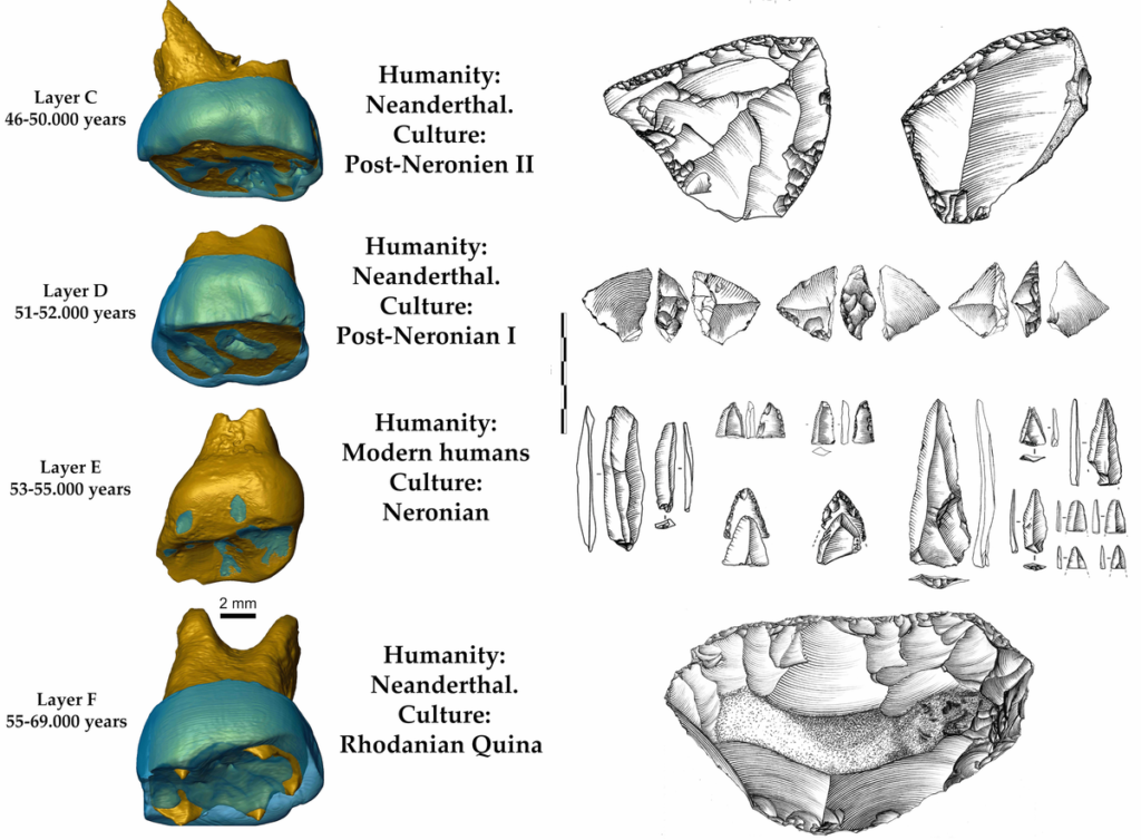 These Neronian points have no equivalent technology among the Neanderthal groups that lived before and after the arrival of the first modern humans in Grotte Mandarin.