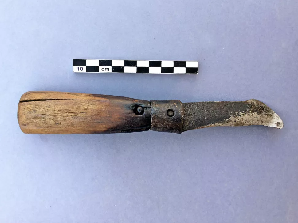 A knife with an iron blade and wooden handle was among the finds, and the researchers think it may have been used by ancient robbers to cut the bandages of the mummies.