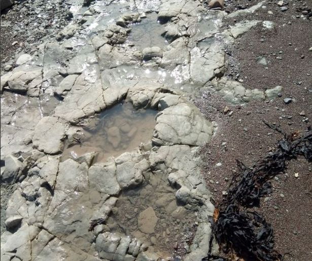 Kerry, from Ferndale in the Rhondda, was aware of the area’s history of dinosaur discoveries – with a fossilised skeleton of a distant cousin of the fearsome Tyrannosaurus Rex found on the same stretch of coastline back in 2014 – and sent pictures of the footprints to the Natural History Museum for experts to investigate.