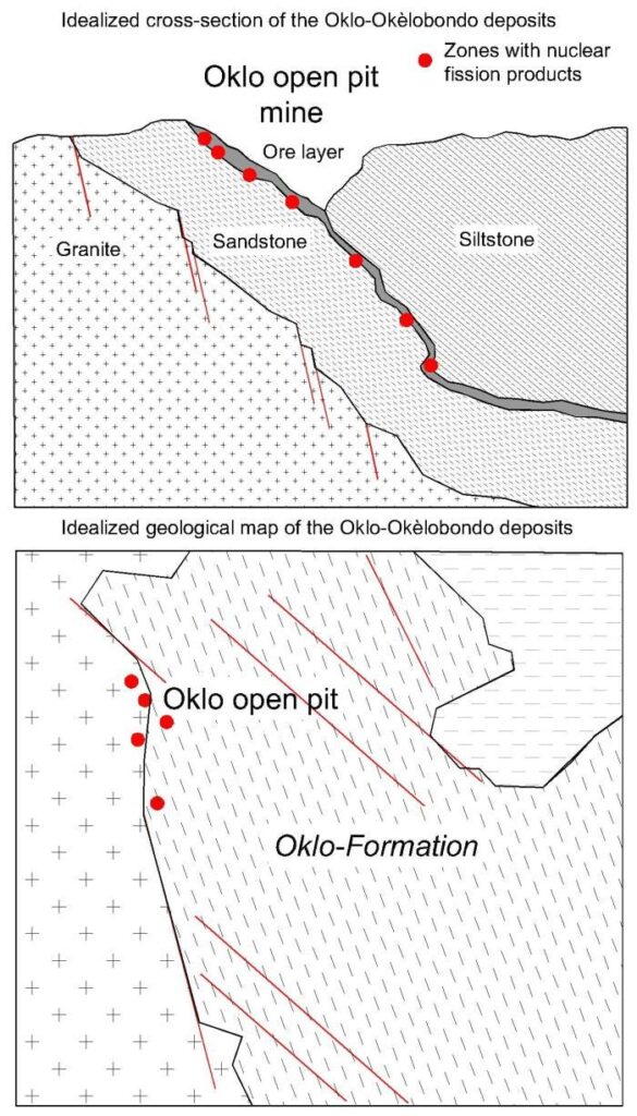 Research by a team of scientists of the US Naval Research Laboratory in Washington D. C. and published in the journal PNAS has investigated how the Oklo-reactor was able to work so long and yet not pollute the environment. In rocks recovered from the Oklo mine, barium (the ‘trace’ left by the former radioactive elements) is not found evenly distributed but rather found in nests surrounded by a thin layer of ruthenium compounds.