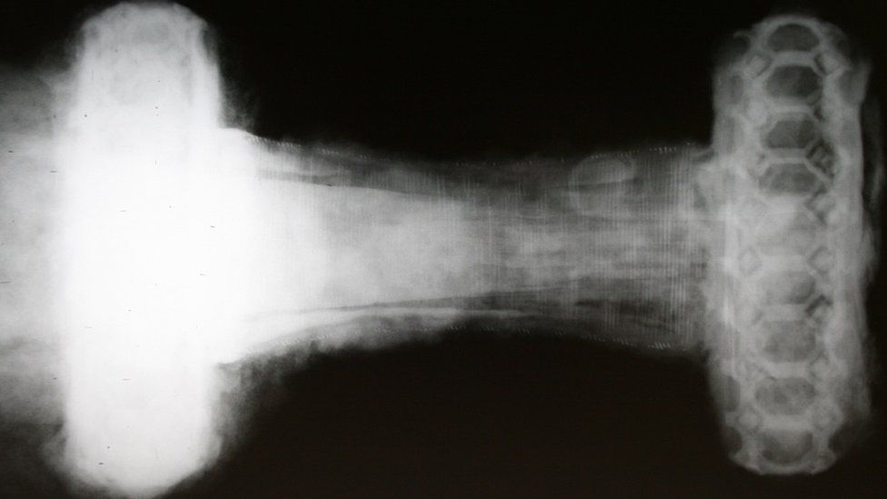 Archaeologists have now identified it as a type of heavy sword associated with the 9th Century. The relic is heavily corroded, but x-rays have revealed the sword’s guards to be highly decorated.