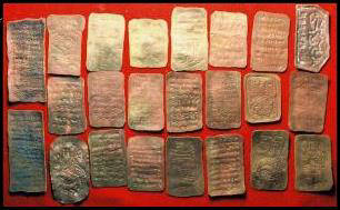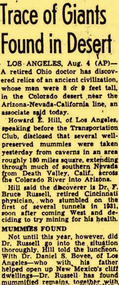 In 1955 a man by the name of John Brewer found a set of stone stairs carved on the floor of a cave near Manti, Utah. After gaining access he discovered a tomb or chamber where he found large coffins and mummies with red and blond hair of very large stature. He also found boxes with metal plates inscribed in an ancient text. He showed this to a friend, Dr Robert Heinerman, PhD in anthropology. No photos exist of the coffins or mummies. Only photos of the plates were taken. Some of the plates were made of gold, some of the copper.
