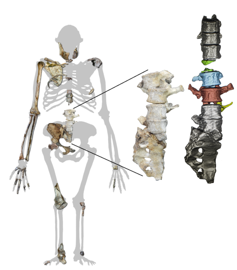 “The lumbar region is critical to understanding the nature of bipedalism in our earliest ancestors and to understanding how well adapted they were to walking on two legs,” says Professor Scott Williams of New York University and Wits University and lead author on the paper. “Associated series of lumbar vertebrae are extraordinarily rare in the hominin fossil record, with really only three comparable lower spines being known from the whole of the early African record.”