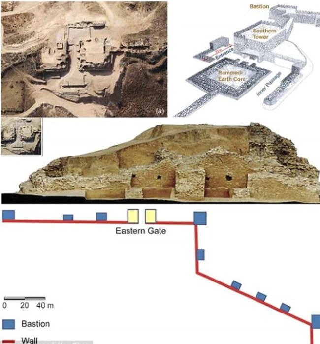 “At the entrance to the stepped pyramid were sophisticated bulwarks (walls) whose design suggests that they were intended to provide both defence and highly restricted access.”