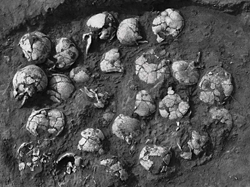 “In the outer gateway of the eastern gate on the outer rampart alone, six pits containing decapitated human heads have been found. Morphological analysis of the human remains suggests that the victims may have been related to the residents of Zhukaigou (a nearby city), which could further suggest that they were taken to Shimao as captives during the expansion of the Shimao empire.”
