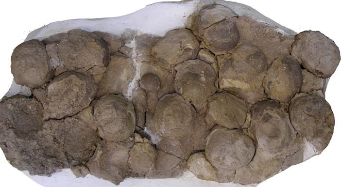 The dino is an ancestor of long-necked herbivores called sauropods, such as Brachiosaurus. Most of the chicken-sized eggs were discovered in clusters of eight to 30, suggesting they resided in nests as part of a common breeding ground.