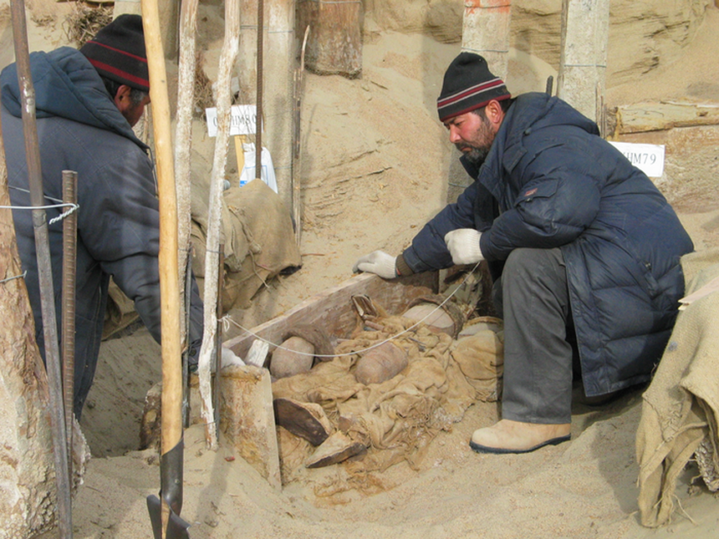 The remains, which date from 2,000 BCE to around 200 CE, are confounding for their remarkable state of preservation, luxurious clothing, and their burial in boat coffins among miles and miles of sand dunes, far from any sea.