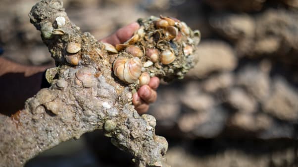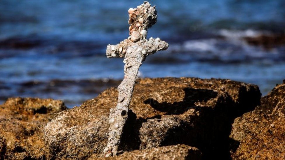 Besides the near-millennium-old sword, the diver found a trove of ancient artefacts, including anchors and pottery.