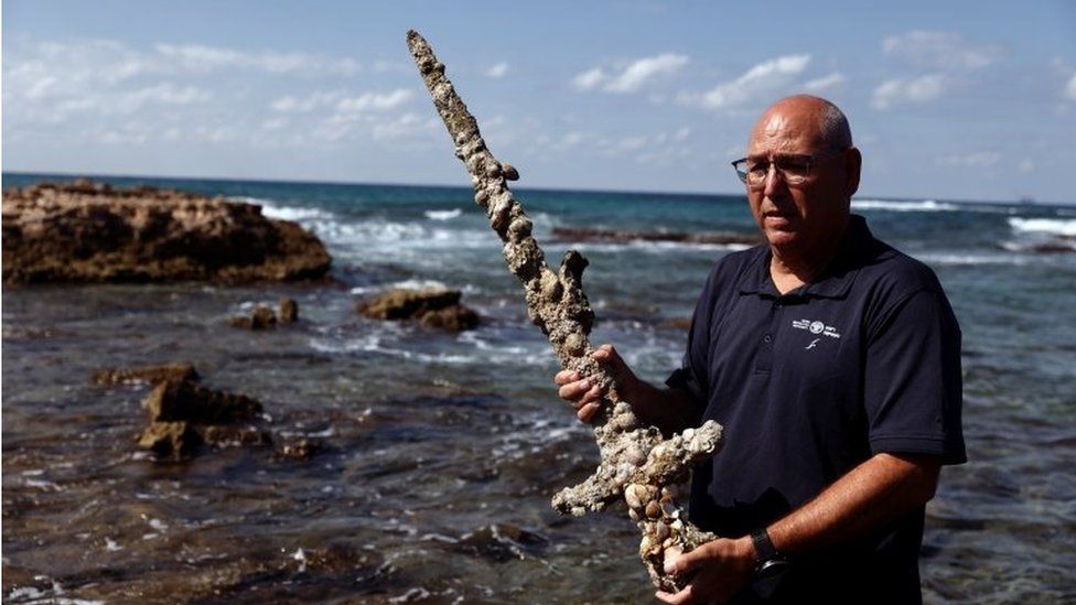 The man, identified as Shlomi Katzin, was on a weekend dive in northern Israel when he noticed its distinctive hilt and handle after the undercurrent shifted the sand that concealed it.