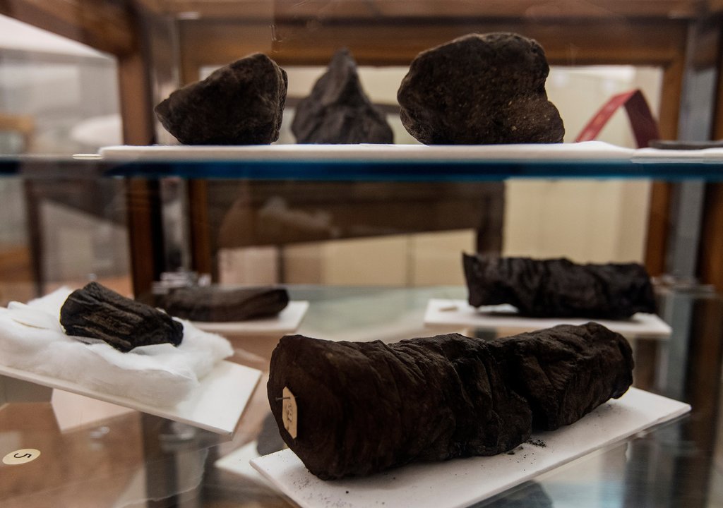 A blast of furnace-like gas from the volcano at 400C (752F) carbonised the papyrus scrolls before the town was buried in fine volcanic ash which later cooled and solidified into rock. When excavators and treasure hunters set about exploring the villa in the 18th Century, they mistook the scrolls for lumps of charcoal and burnt logs. Some were used as torches or thrown onto the fire.