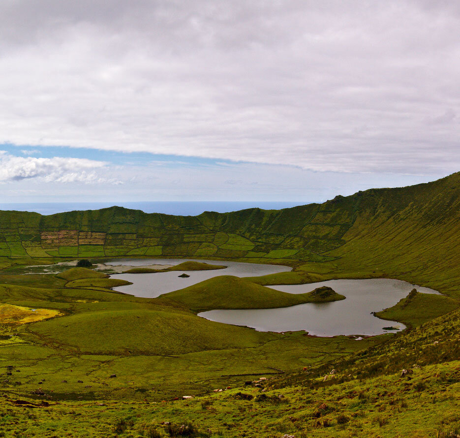 Lake Caldeirão inside the collapsed caldera of Corvo Island.
