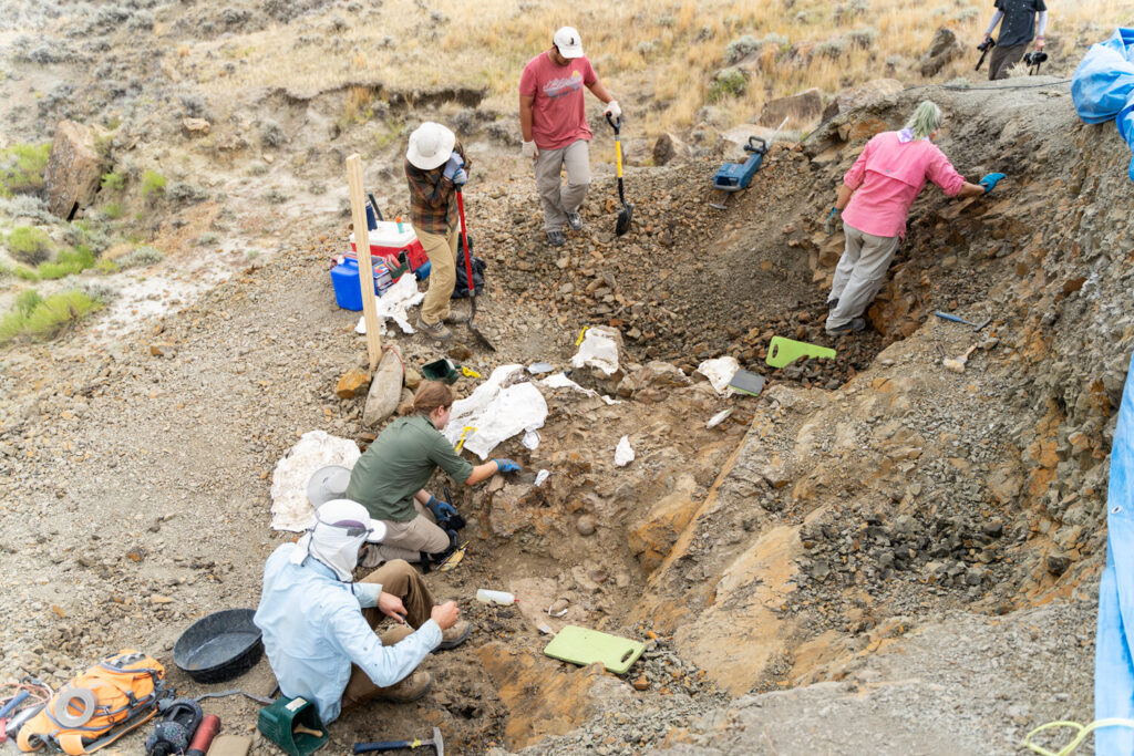 In July 2021, a team of volunteers, palaeontology staff, K-12 educators who were part of the DIG Field School program and students from UW and other universities worked together to excavate these dinosaurs.