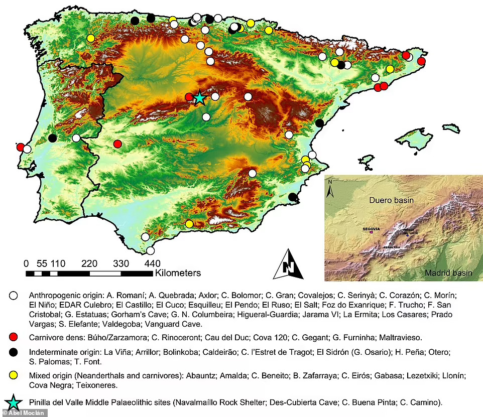 ‘We have been able to demonstrate with great certainty that the Neanderthals of Navalmaíllo hunted mainly large bovids and deer that they processed at the site and that they would later move to a second referential place,’ said Abel Moclán, the study’s lead author and a researcher at the National Center for Research on Human Evolution.