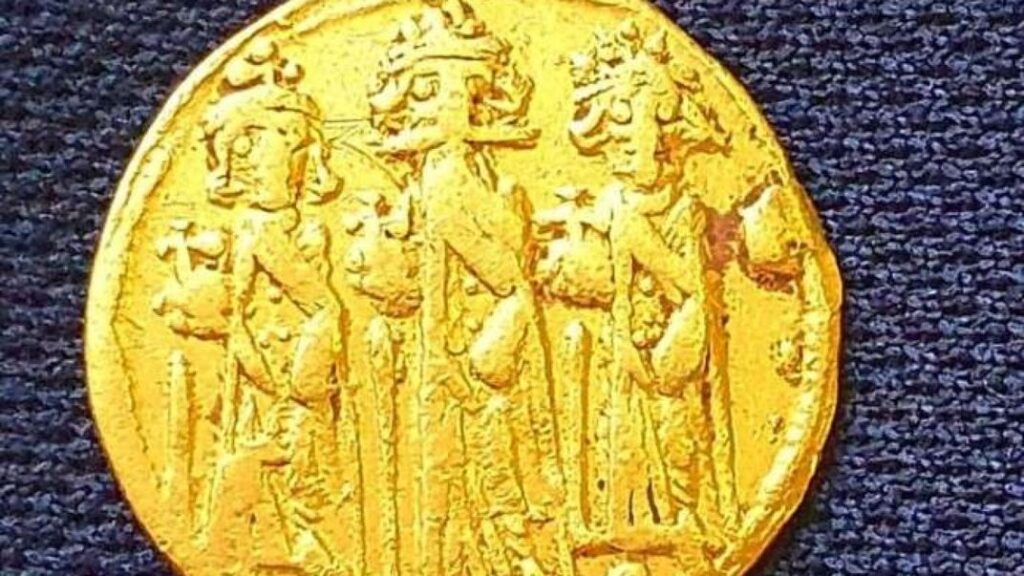 As Stuart Winer reports for the Times of Israel, the coin was minted in 638 or 639 C.E. under the authority of Byzantine emperor Heraclius. One side shows the emperor and his two sons.