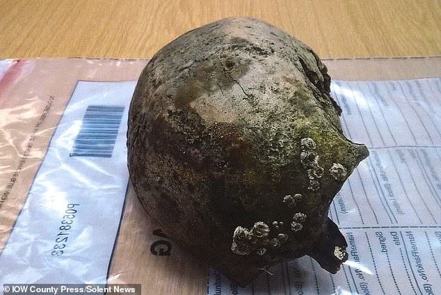 Mr Plowright said: ‘I thought it was part of an old football when I first saw it and so I booted it down the beach. I soon realised it wasn’t a ball.