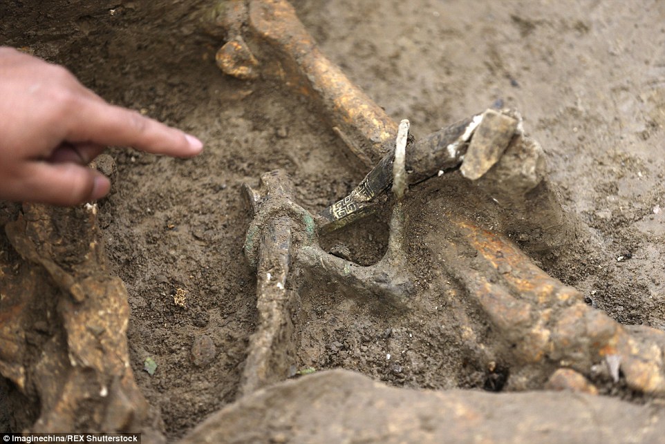 The tomb contained copper bells and ceremonial pots. It is the largest site of around 200 tombs in the area. There was also a horse burial pit that contained whole horse skeletons and chariots.