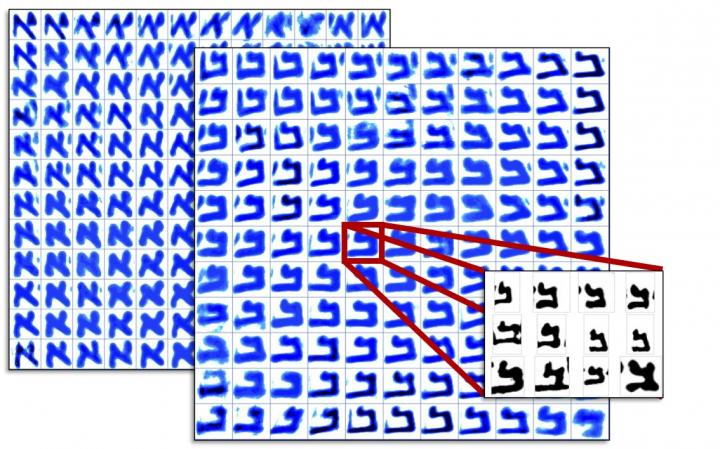 In this study, together with PhD candidate Maruf Dhali, they focused on one scroll in particular: the famous Great Isaiah Scroll (1QIsaa) from Qumran Cave 1. The handwriting in this scroll seems near-uniform, yet it has been suggested it was made by two scribes sharing a similar writing style. So how could this be decided? Schomaker: ‘This scroll contains the letter aleph, or “a”, at least five thousand times. It is impossible to compare them all just by eye.’ Computers are well suited to analyse large datasets, like 5,000 handwritten a’s. Digital imaging makes all sorts of computer calculations possible, at the microlevel of characters, such as measuring curvature (called textural) and whole characters (called allographic).