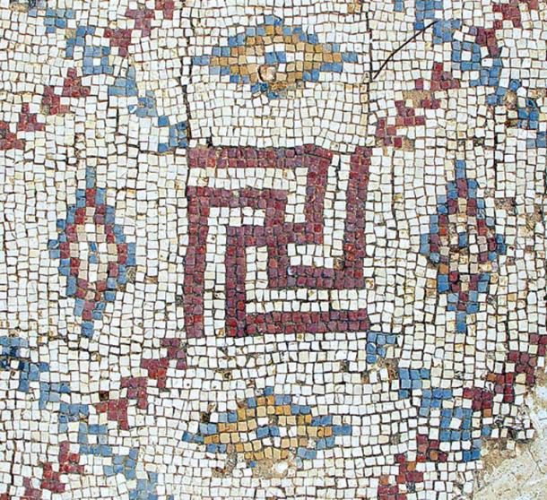 Mosaic swastika in excavated Byzantine church in Shavei Tzion (Israel).