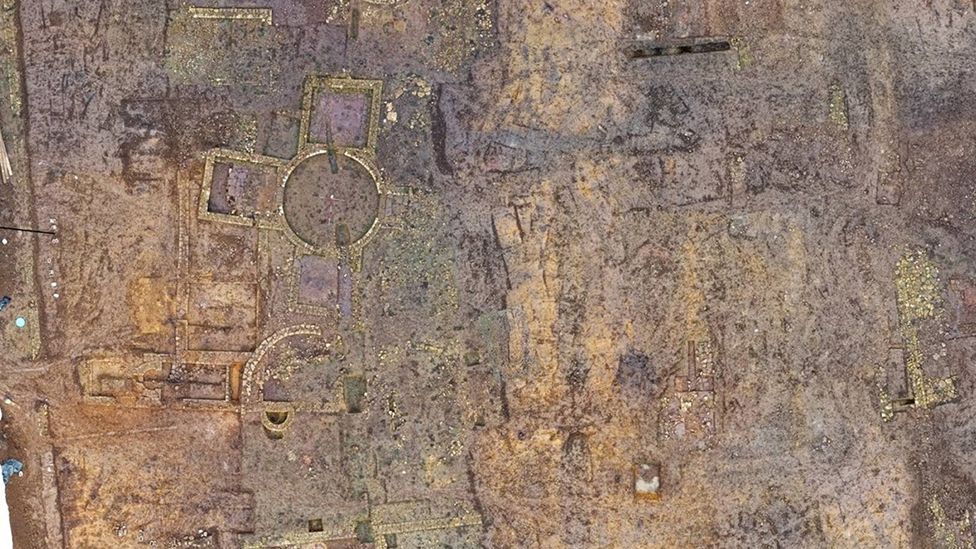 BBC News reports that a large villa complex with its own bathhouse has been discovered at a construction site in northern England. Keith Emerick of Historic England said the house, which has a circular central room flanked by additional rooms, is the first of its kind to be found in Britain.