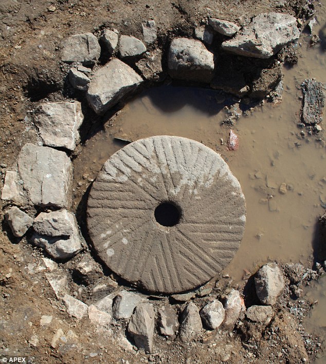 Other historic treasures include an iron spur from a child’s boot, three wooden barrel bases, and a 27 inch (70 cm) diameter Dartmoor granite millstone, used to grind wheat into flour.