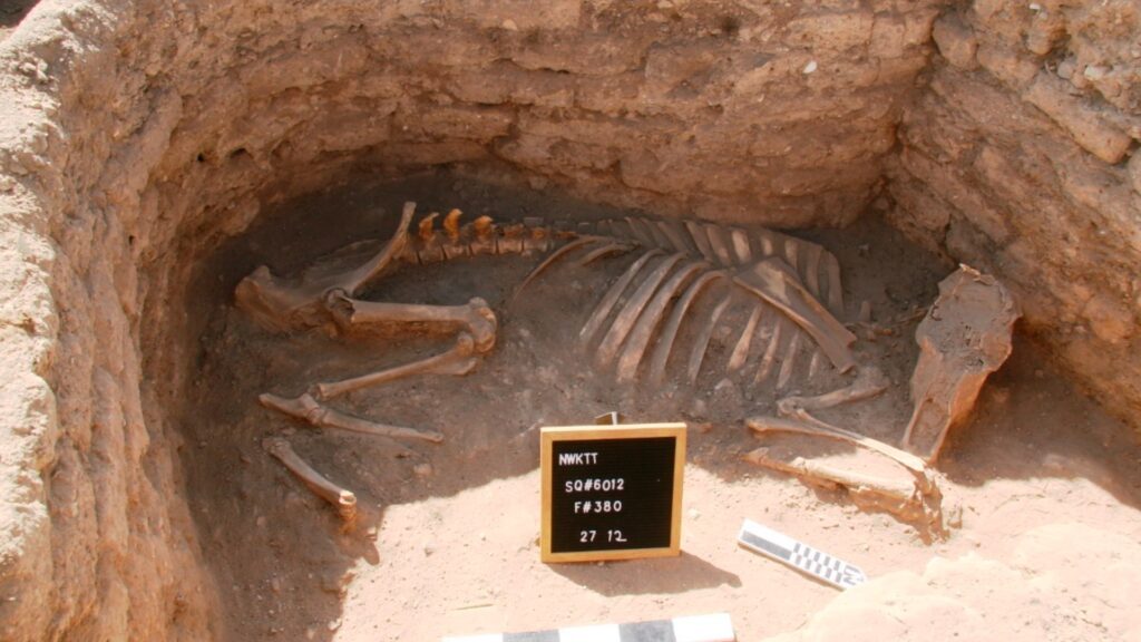 One room within the city contains the burial of two cows or bulls—an unusual find that researchers are still investigating. In another odd discovery, the team found a human burial with the remains of a rope wrapped around the knees.