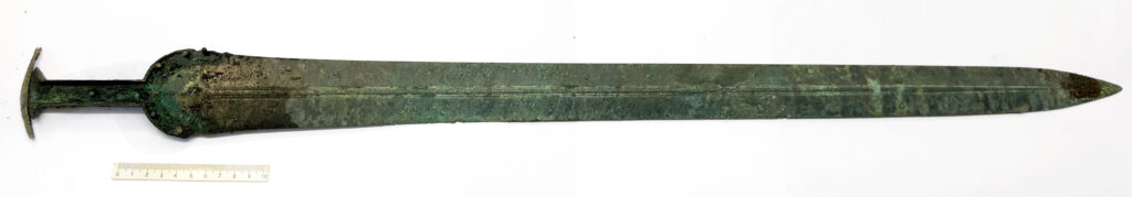 The metal was likely imported from Central Europe and then crafted by a local blacksmith. The sample from the bronze alloy of the sword will be tested to identify its exact composition and its source location.