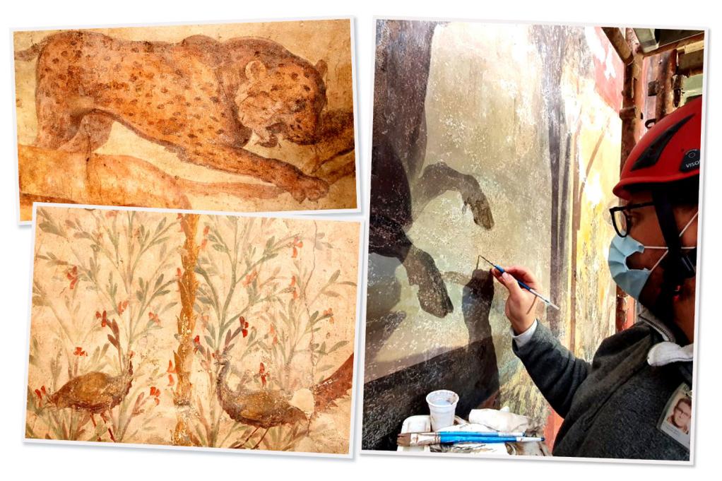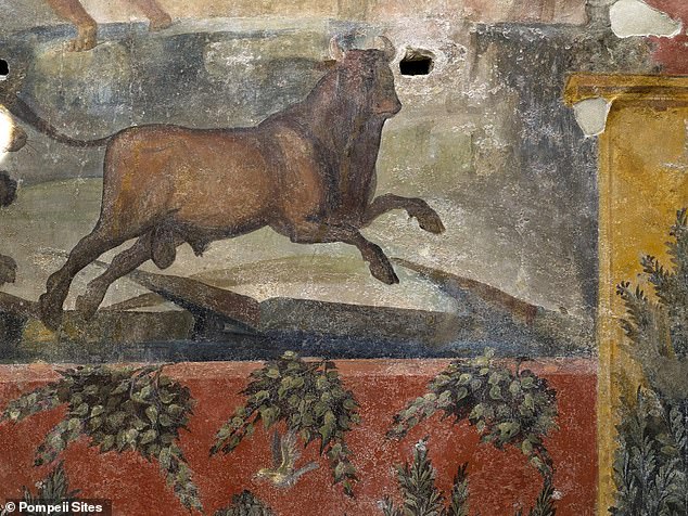 The artwork — of hunting scenes — was painted in the so-called ‘Third’ or ‘Ornate’ Pompeii style, which was popular around 20–10 BC and featured vibrant colours.
