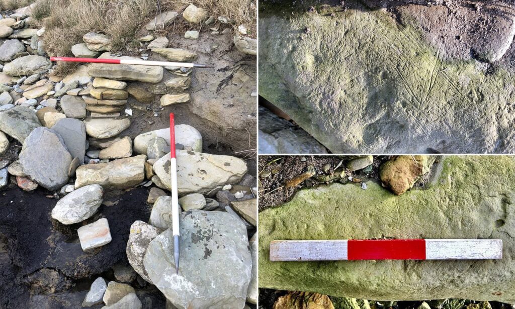 The finds of a badly damaged wall, which had been exposed due to the pounding tides on this stretch of coast, along with deer antlers, a boar tooth, a cattle jawbone and a large decorated stone have led archaeologists to consider whether “another Skara Brae” is waiting to be discovered.