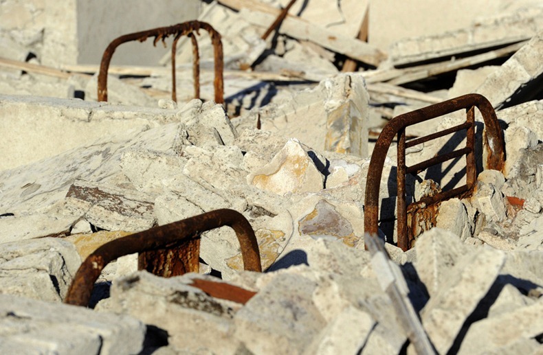 The salt has preserved tiny details, freezing the resort in time and allowing a voyeuristic glimpse into the past. Near the main street are the remains of a pizzeria. The sculptures that the owner bought to decorate his business are still intact, including a stone crescent moon sitting outside as though it were still 1985. In the rubble, a wood-fired pizza oven is clearly visible.