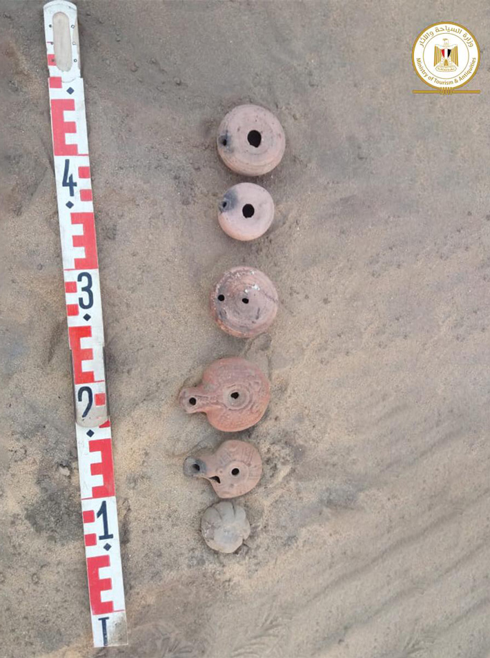 Also, a clay vase and part of a red brick vault dating back to the Coptic era were found, as well as cartridges of Ptolemaic kings, late hieratic inscriptions and one of the Greek emperors.