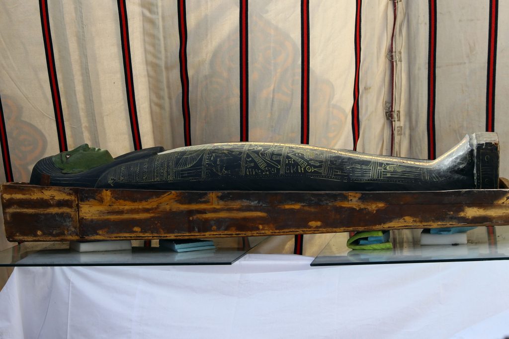 “These coffins are wooden and anthropoid … many of the gods that were worshiped during this period were represented on the surface of the coffins, in addition to various excerpts from the Book of the Dead that help the deceased pass through the journey of the other world,” the Ministry of Tourism & Antiquities said in a statement.
