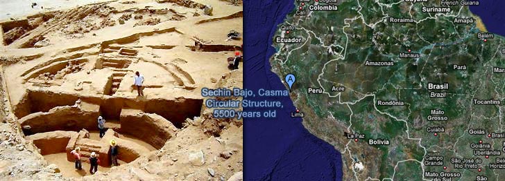 Earlier finds in the Sechin Bajo area, in the Casma Valley of Peru’s Ancash region, had been dated at more than 3,000 years old. But the circular plaza pushes the area’s settlement date back considerably.