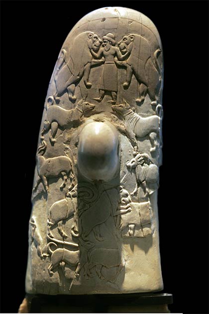 The themes come from Nilotic as well as Mesopotamian traditions: animals, the hunt, lions overwhelmed by a figure, boats, and human combats.