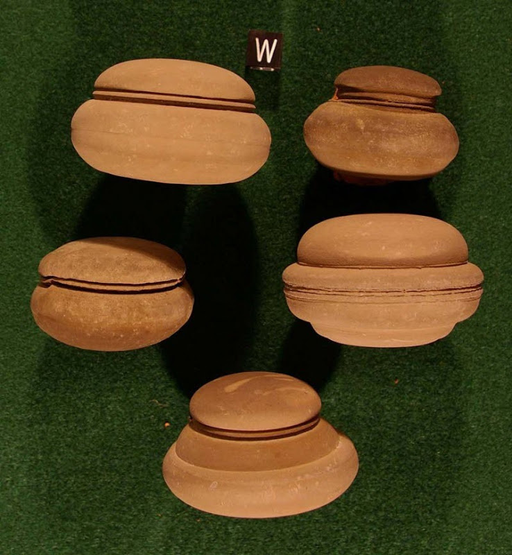 Examples of calcareous concretions, which exhibit equatorial grooves, found in Schoharie County, New York.