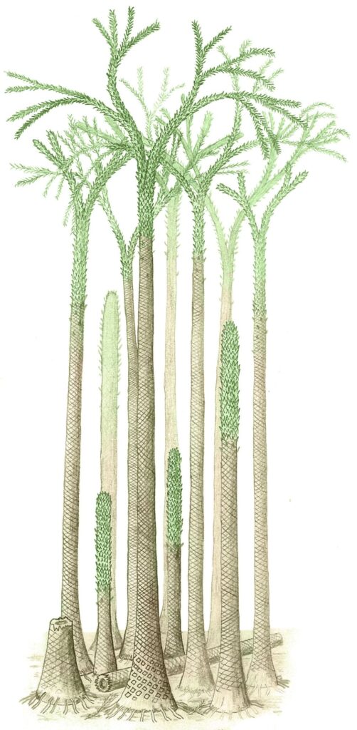 A reconstruction of what the ancient forest look liked 385 million years ago, drawn by Dr. Chris Berry, co-author of the study describing the fossil trees.