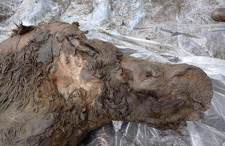 The juvenile rhino with thick hazel-colored hair and the horn, found next to the carcass was discovered in the middle of August in permafrost deposits by river Tirekhtyakh in the Abyisky ulus (district) of the Republic of Sakha.