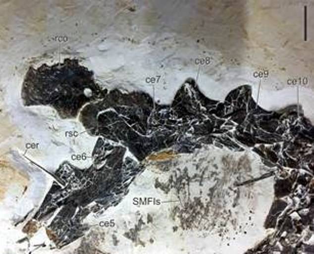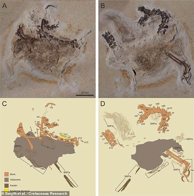 ‘These are such extravagant features for such a small animal — and not at all what we would predict if we only had the skeleton preserved,’ said paper author and palaeontologist Robert Smyth, also of the University of Portsmouth.