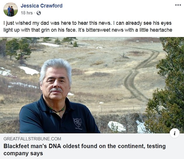 Crawford’s DNA was 83 percent native American according to the report, with 73 percent of that coming from one tribe alone, the Blackfeet Nation.