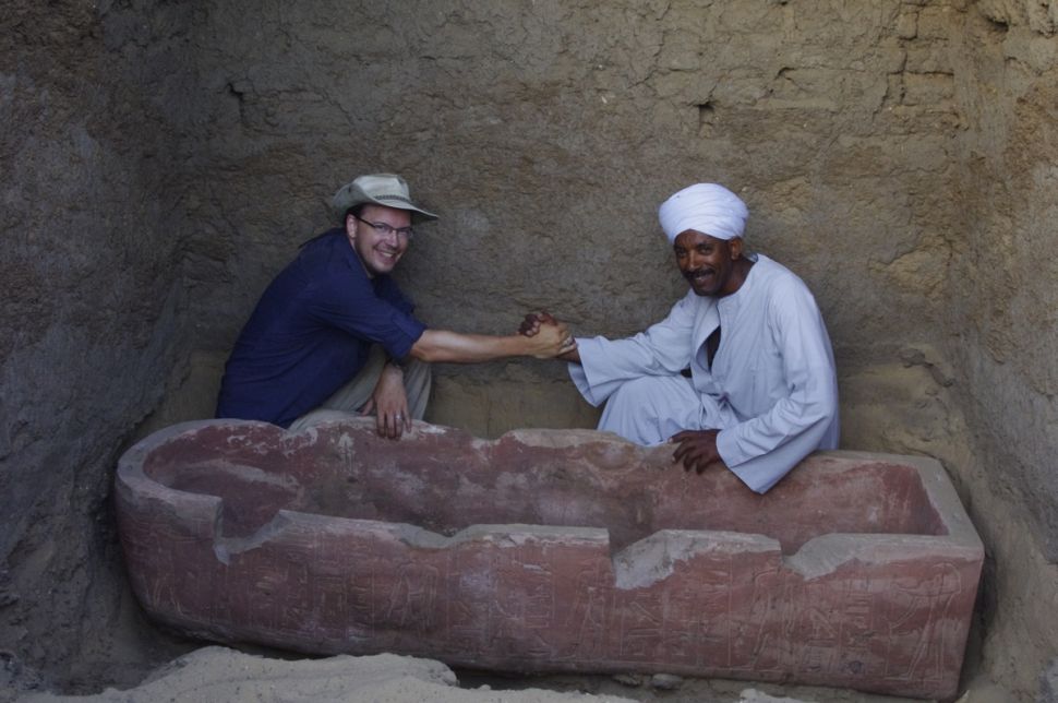 In one of the burial chambers, the archaeologists found a sandstone sarcophagus, painted red, which was created for a “scribe” named Horemheb.