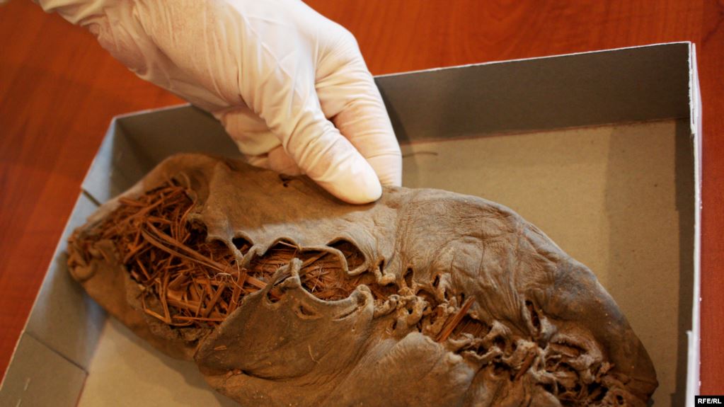 The shoe was discovered by an Armenian PhD student, Ms Diana Zardaryan, of the Institute of Archaeology, Armenia, in a pit that also included a broken pot and wild goat horns.