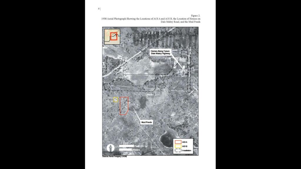 • A 45-acre “wooded area in the northwestern area” of the base near where the radar possibly found graves. Because the archaeologists could not confirm the cemetery’s boundaries, the archaeologists recommend the “wooded tract be treated with caution in the event that human remains may be present.”
